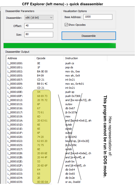 And if you want to see the source code of the DOS stub, you can decompile it in 16-bit mode using CFF explorer (or any other disassembler you have)