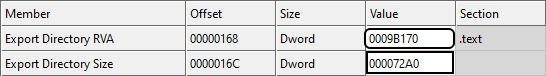 Export section interval = [0x0009B170, 0x0009B170 + 0x000072A0] = [0x0009B170, 0x000A2410]