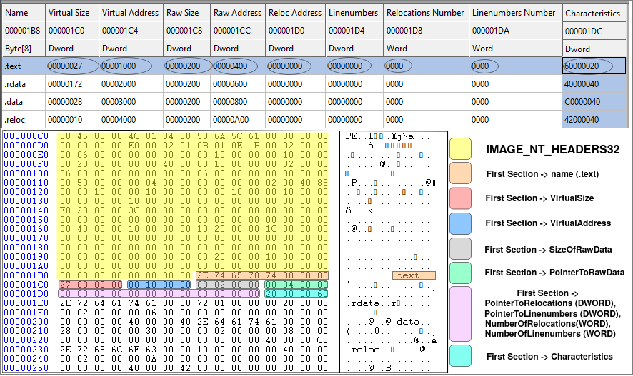 Another important thing is how to convert VA and RVA to file offset and vice versa. This one, we explore when we know more about PE sections.